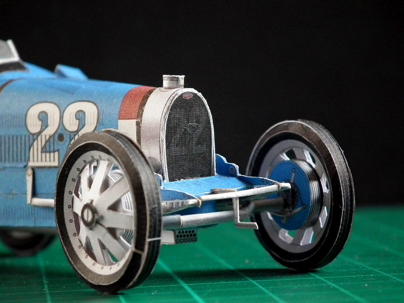 Do sportowych samochodów Bugatti mam spory sentyment. Był to pierwszy chyba model (no, coś w rodzaju…) wykonany przeze mnie całkowicie samodzielnie na podstawie kilku niezbyt wyraźnych fotografii z ówczesnej prasy i plastikowego modeliku produkcji Spółdzielni Estetyka produkowanego w latach siedemdziesiątych (Type 35, kopia bodaj Matchboxa). Dość nieforemny, malowany plakatówkami i srebrolem przetrwał dobrych kilka lat. Niestety, nie mam już fotografii tego dziełka, z którego jako dziecko byłem bardzo dumny. Może się kiedyś odnajdzie…